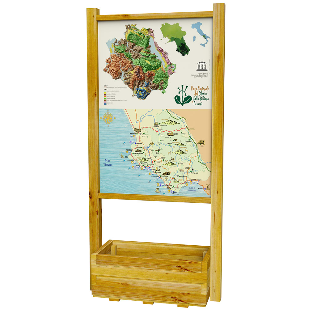 • N.1 pannello espositivo realizzato in multistrato marino da esterno corredato da cornice perimetrale;