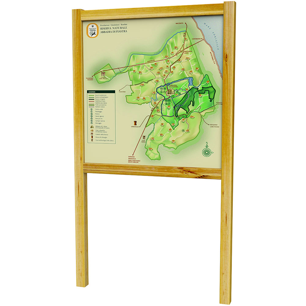 • N.1 pannello espositivo realizzato in multistrato marino da esterno corredato da cornice perimetrale;