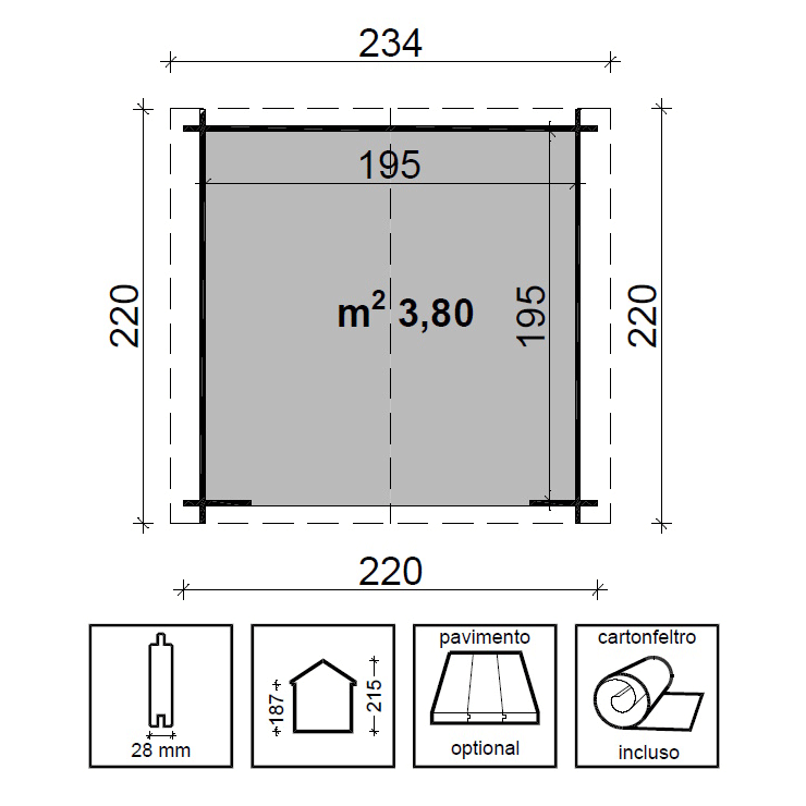 • Kit pavimentazione con perline in abete grezzo.