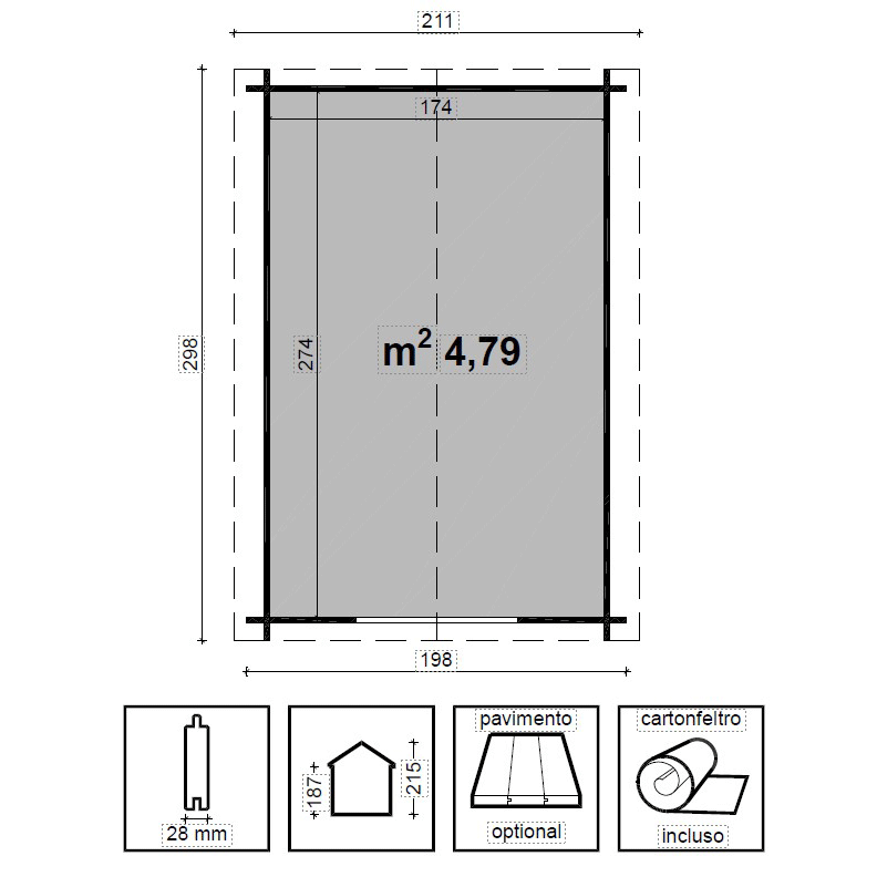 • Kit pavimentazione con perline in abete grezzo.