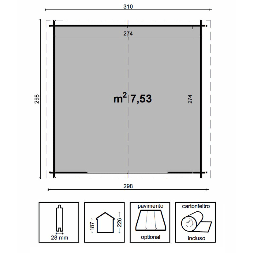 Casetta interamente realizzata in legno di abete grezzo non trattato, colore naturale, composto da: