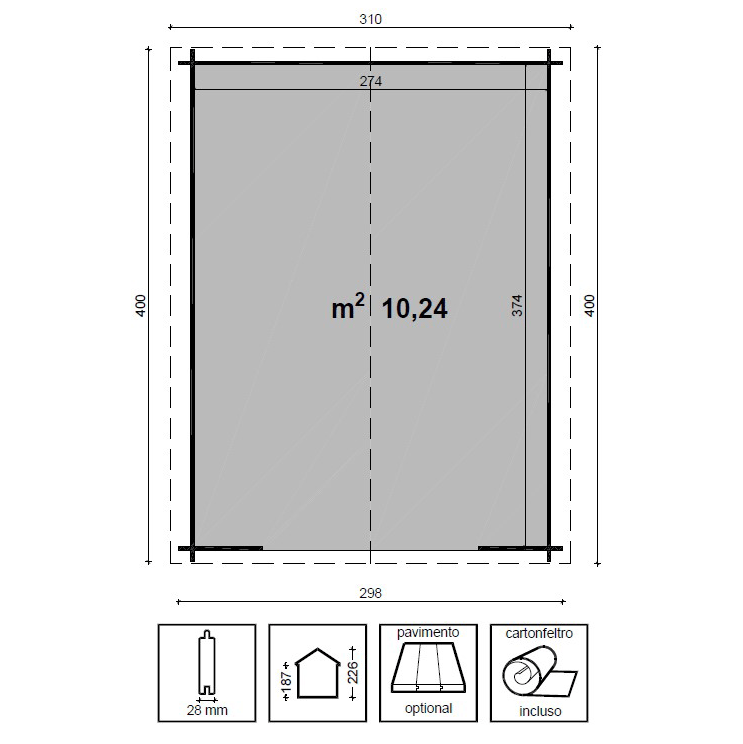 Casetta interamente realizzata in legno di abete grezzo non trattato, colore naturale, composto da: