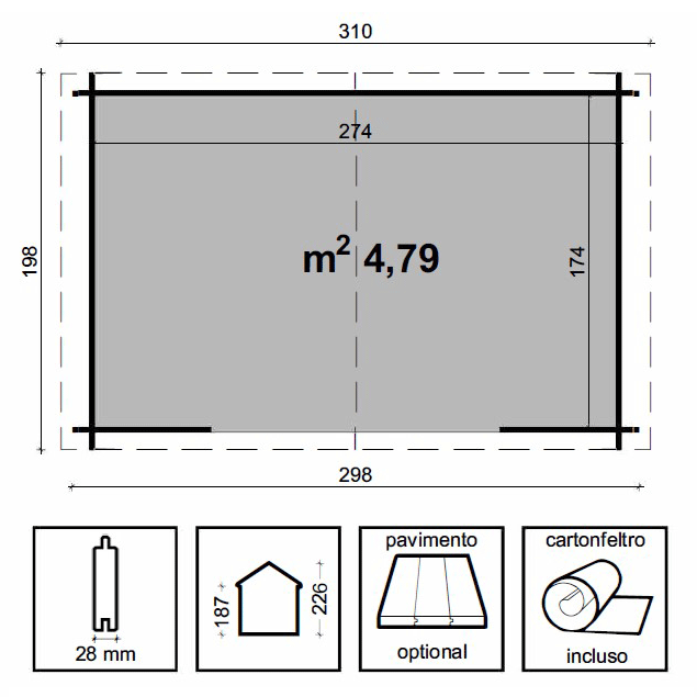 Casetta interamente realizzata in legno di abete grezzo non trattato, colore naturale, composto da: