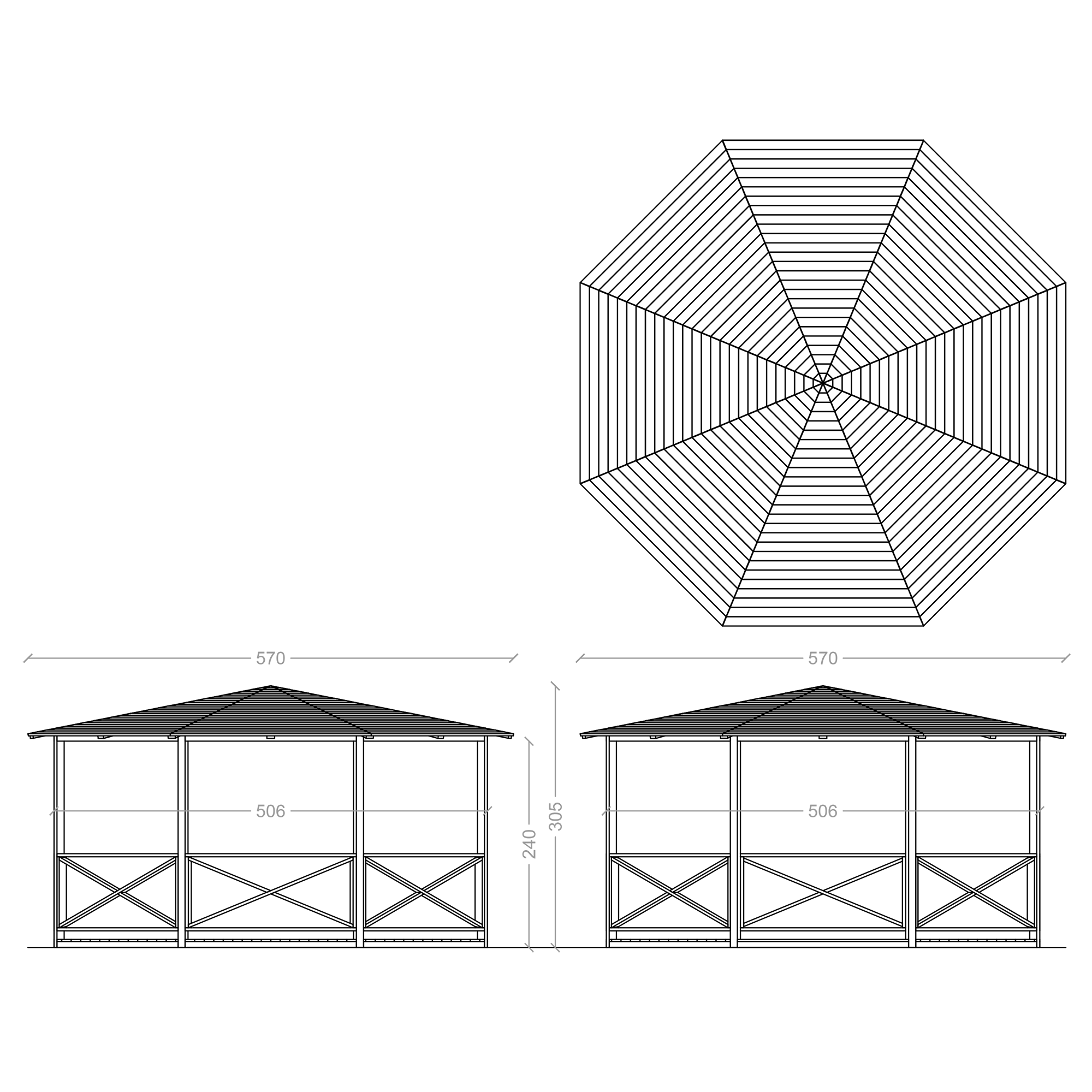 Realizzato interamente in legno di pino nordico impregnato a pressione in autoclave, composto da: