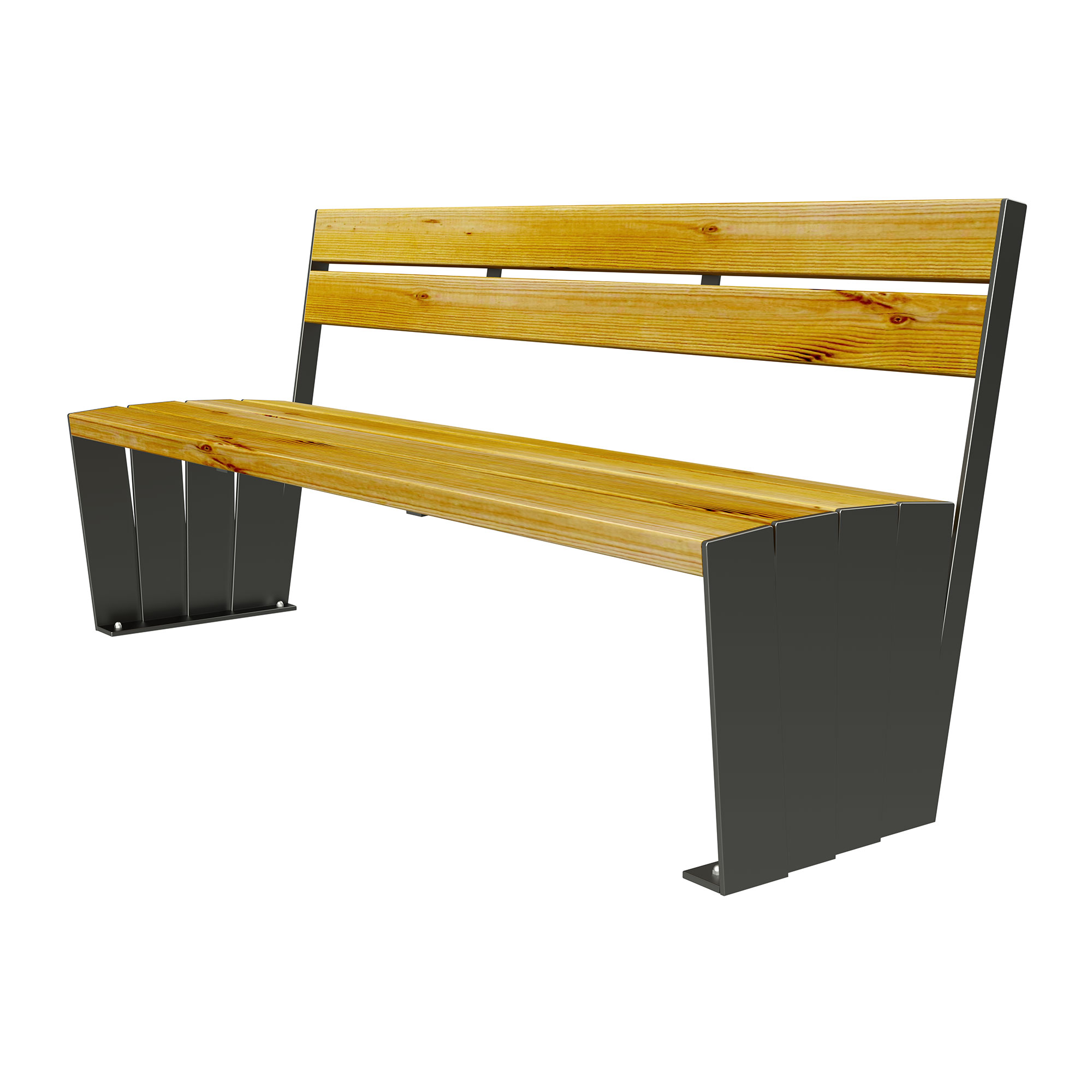 • Seduta e schienale in doghe di legno di pino impregnato o verniciato noce scuro, visionabili nello specchietto tecnico sottostante;