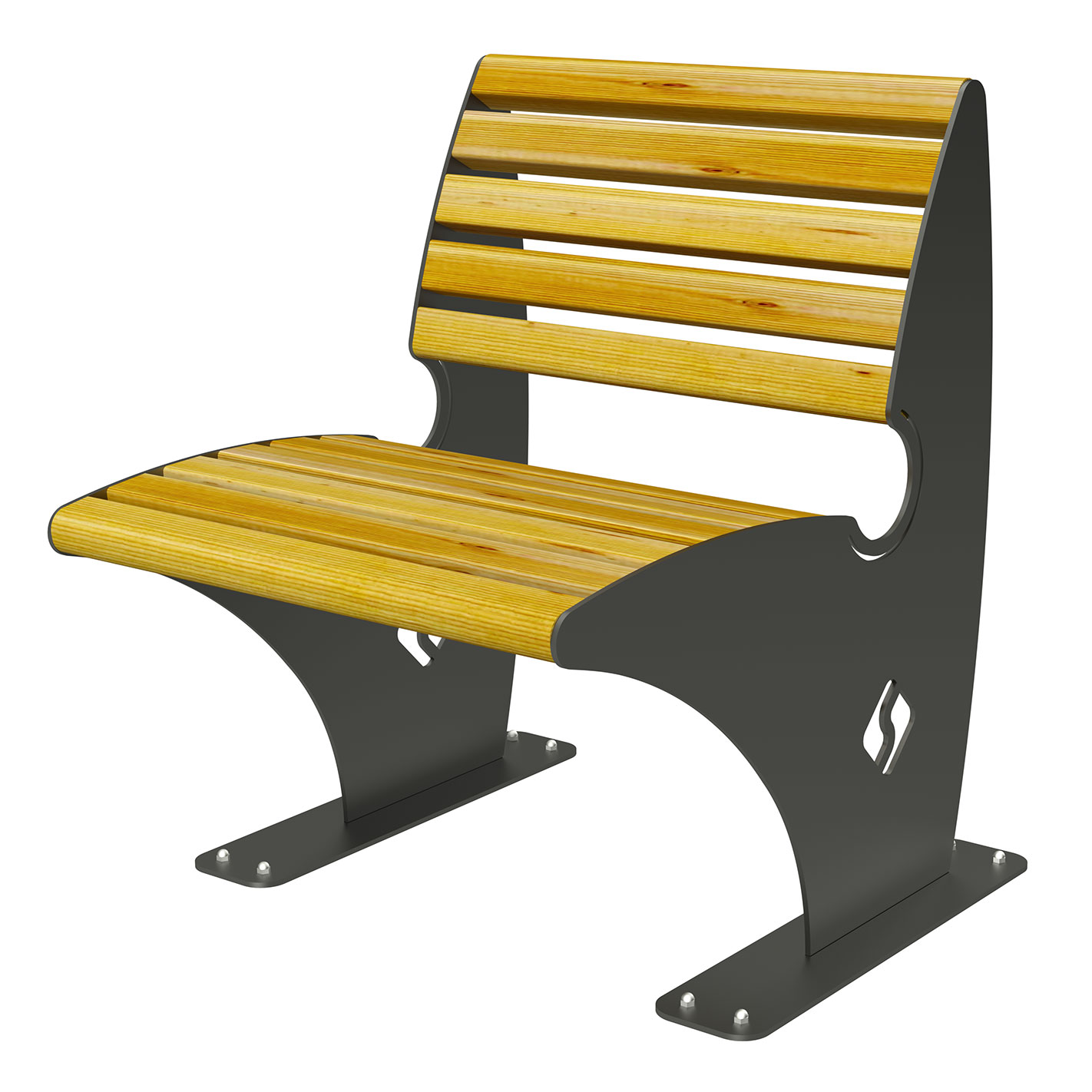 - Seduta e schienale composti da doghe in legno di pino nordico impregnato in autoclave oppure nella versione verniciata colore noce scuro con n.2 mani di impregnante e n.1 mano di finitura trasparente;