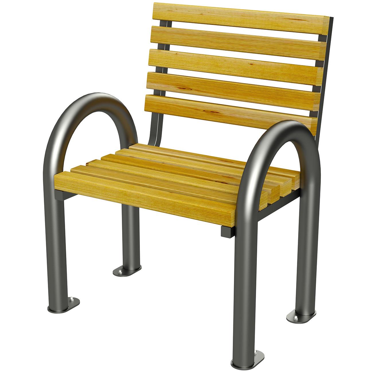 Seduta e schienale composti da doghe in legno di pino nordico impregnato in autoclave oppure nella versione verniciata colore noce scuro con n.2 mani di impregnante e n.1 mano di finitura trasparente;