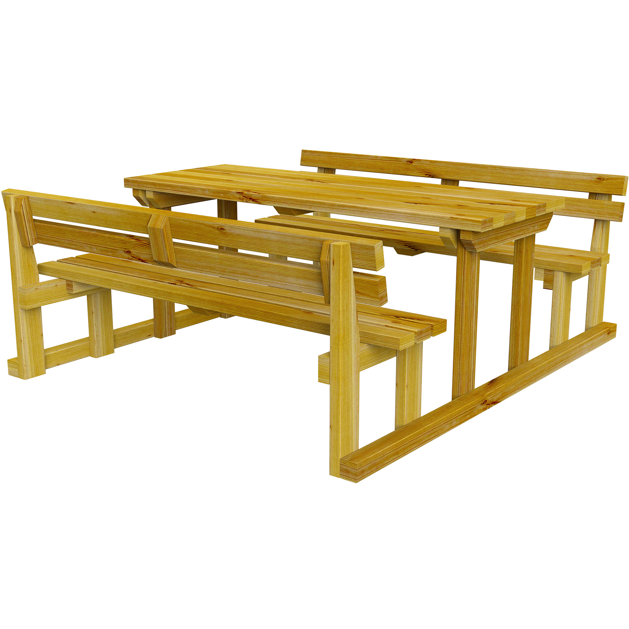 • Composto da un tavolo completo di n.2 panchine con schienale incorporate.