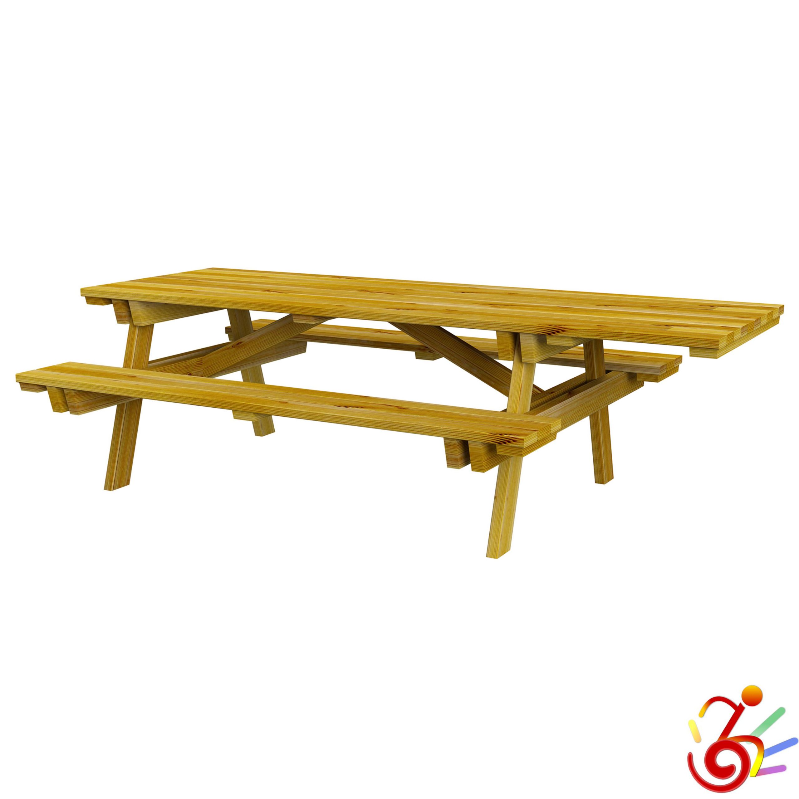 Composto da un tavolo con piano allungato per permettere l’utilizzo anche a persone non deambulanti, completo di n.2 panche senza schienale incorporate;
