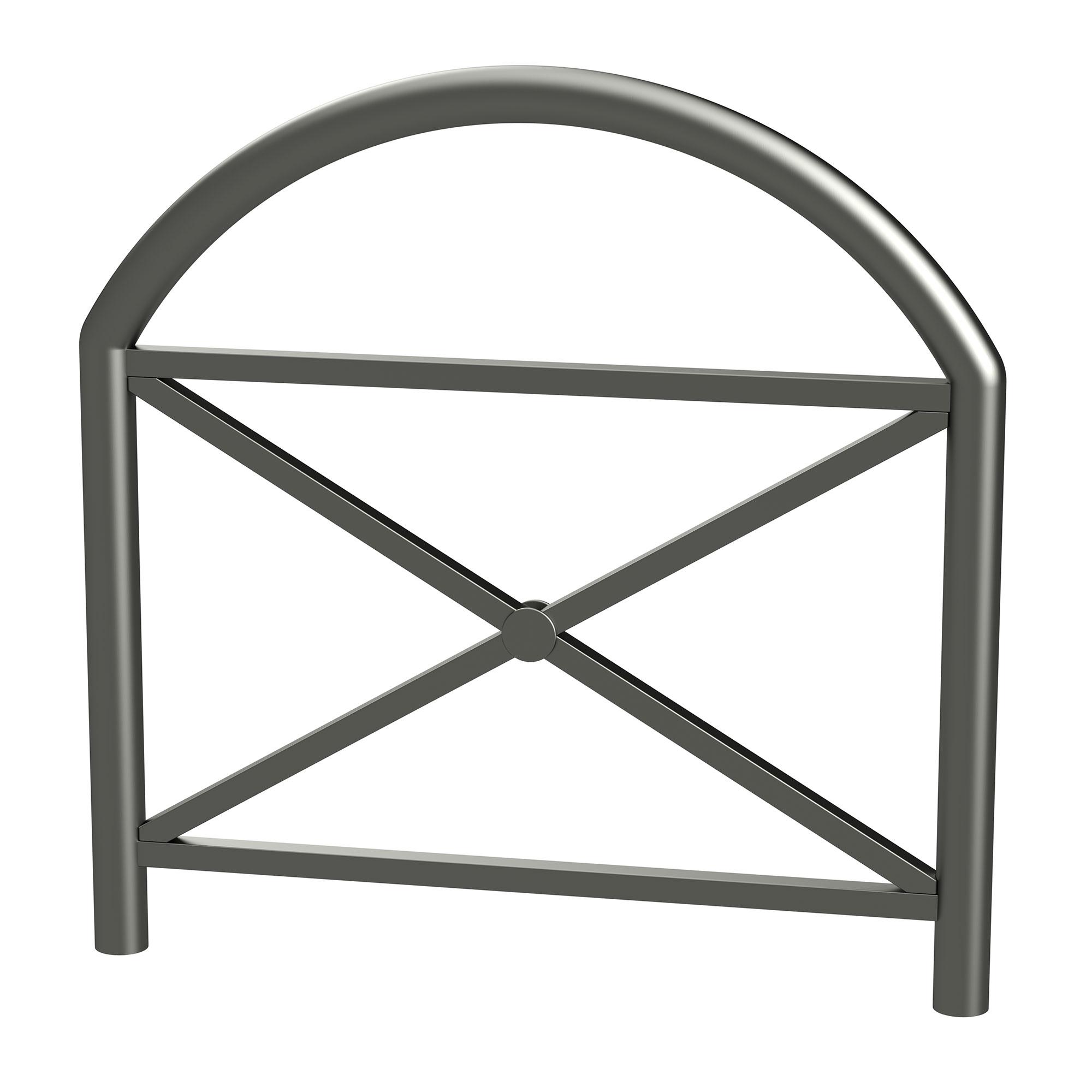 • 1° Versione: Traverse orizzontali di collegamento e croce interna in tubo tondo di acciaio, adornato da un elemento decorativo centrale;