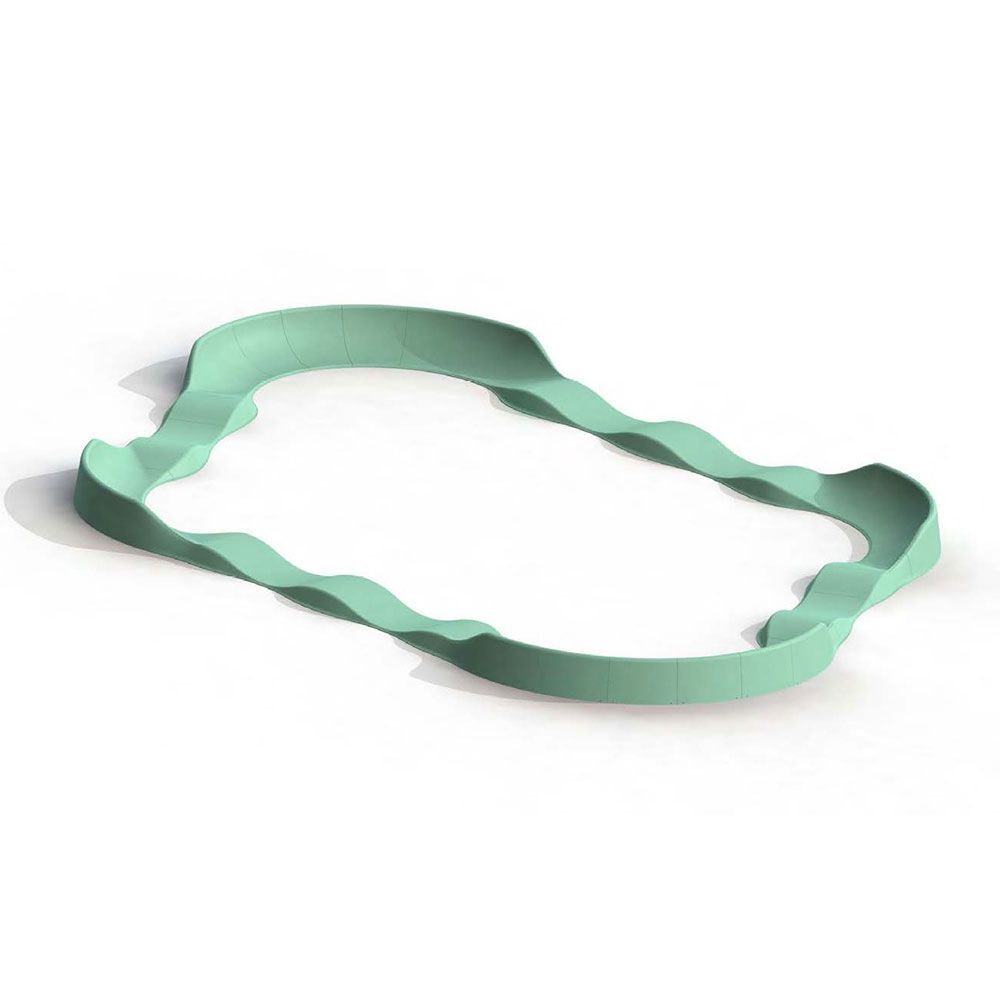 Circuito ondulato ad anello con curve paraboliche, che può essere utilizzato con mountain bike, BMX, skateboard, pattini a rotelle, monopattini e persino con una sedia a rotelle (con assistenza).