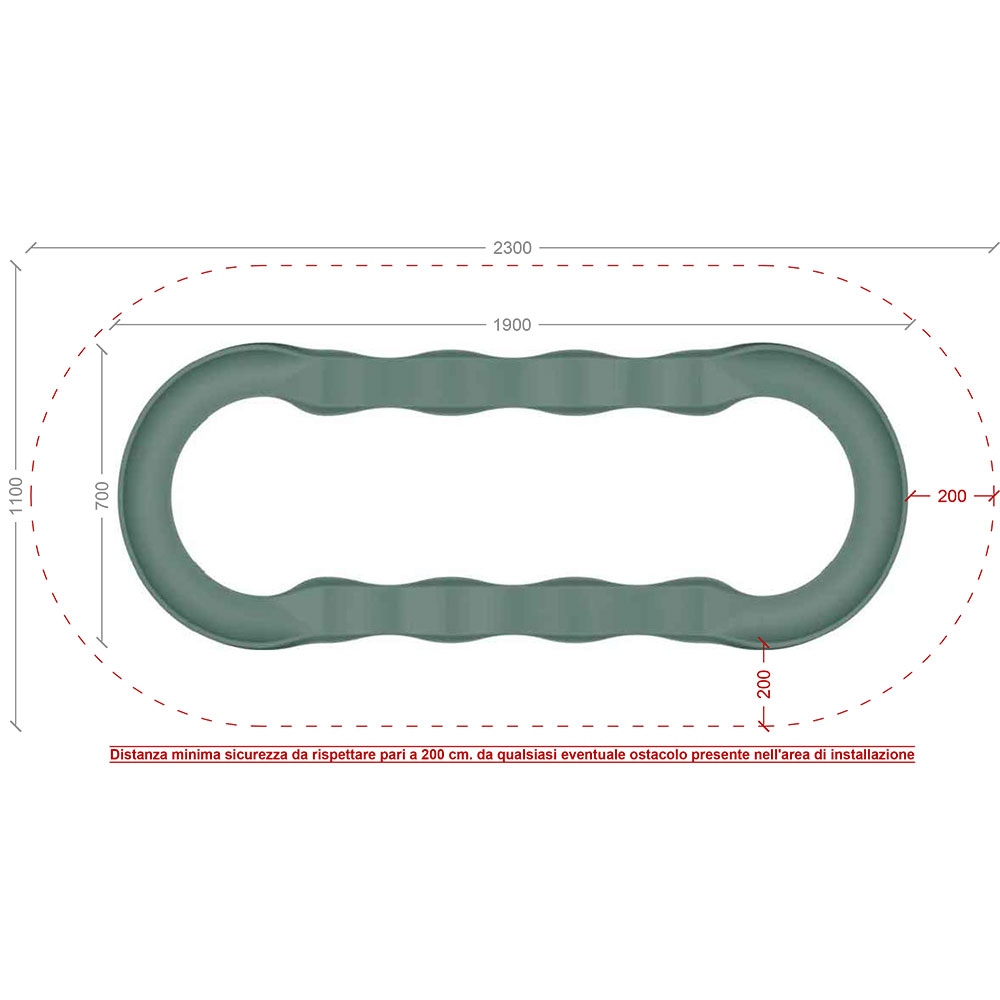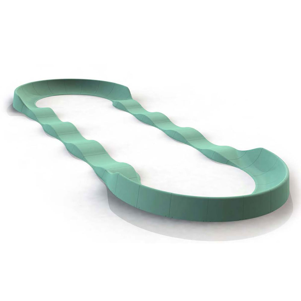 Circuito ondulato ad anello con curve paraboliche, che può essere utilizzato con mountain bike, BMX, skateboard, pattini a rotelle, monopattini e persino con una sedia a rotelle (con assistenza).