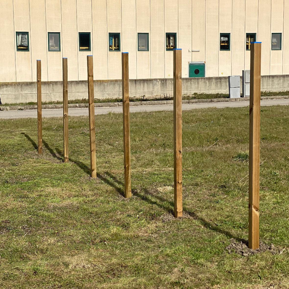 • N.6 pali in legno di pino nordico impregnato in autoclave – sez.cm.7x7x120h;