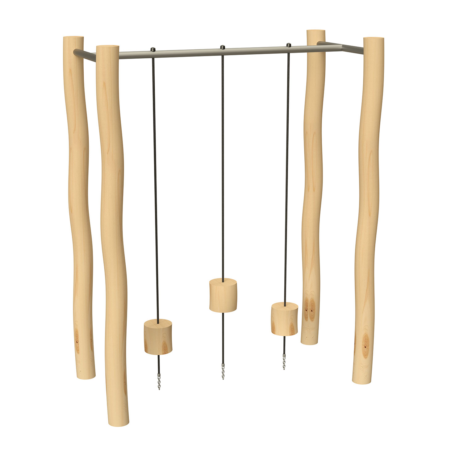 - Camminamento sospeso su elementi in legno di robinia naturale sorretti da corde in nylon con anima interna in acciaio;