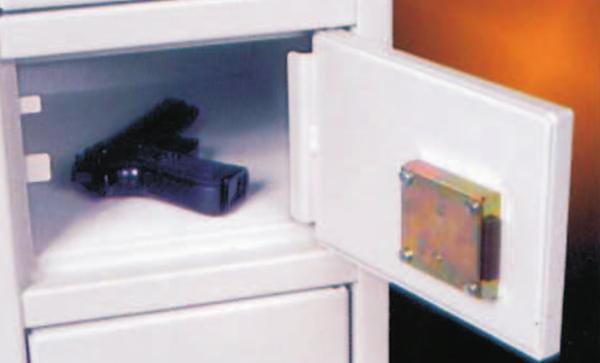 Il vano inferiore, utilizzabile per eventuale armamento di reparto, è accessoriato con una coppia di ponticelli a 3 gole poggiacanne largh. mm270 x 50mm h. x 25 mm prof. e relativa coppia di poggiacalcio fissati al fondo. Sul basamento dell’armadio sono posizionati 4 stabilizzatori regolabili a viote per una corretta messa in opera dell’armadio, mentre il fissaggio a parete può effettuarsi con le 3 coppie di fori esistenti sullo schienale.