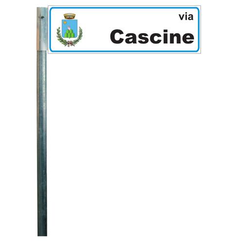 Palo zincato ø6 x 0.2 x h330cm. Optional stemma serigrafato.